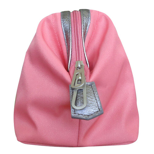 Large zippered U-shaped opening with zipper sliders.